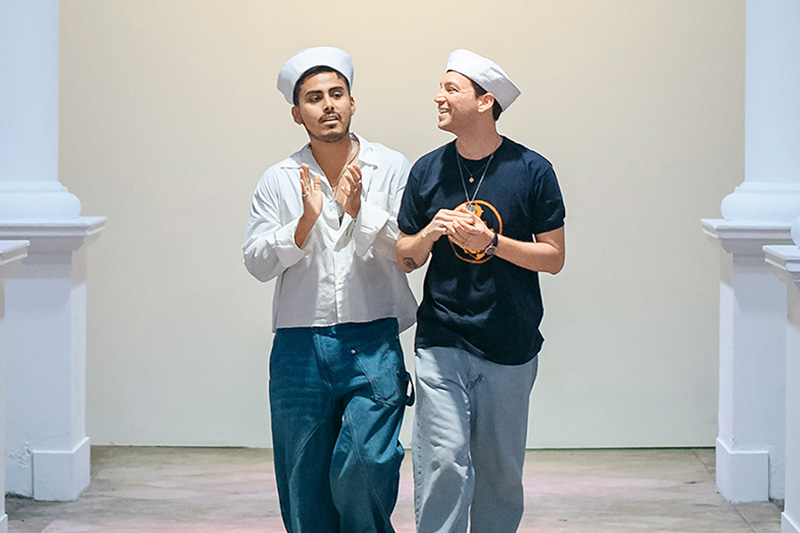 En una casona histórica del puerto del Callao, DELOSANTOS presentó NAVAL, una colección que reinterpreta el uniforme naval desde una óptica audaz y contemporánea. Con 32 piezas que oscilan entre la estructura militar y la sensualidad característica de la firma, este desfile marcó un hito en su evolución.