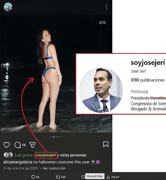 Susana Gutiérrez, comunicadora sin vínculo laboral previo con el Estado, ingresó la tarde del 31 de octubre de 2025 y permaneció hasta la mañana siguiente, más de 12 horas en el despacho presidencial. Tras esa visita, Gutiérrez percibe una remuneración superior a los 18 000 soles mensuales, según información oficial de planillas del Estado. Ella conocía a Jerí antes de que sea mandatario. Fue premiada por el entonces parlamentario de Somos Perú en 2023 por su supuesto “liderazgo en los jóvenes”, un reconocimiento que antecedió a su ingreso al aparato estatal.