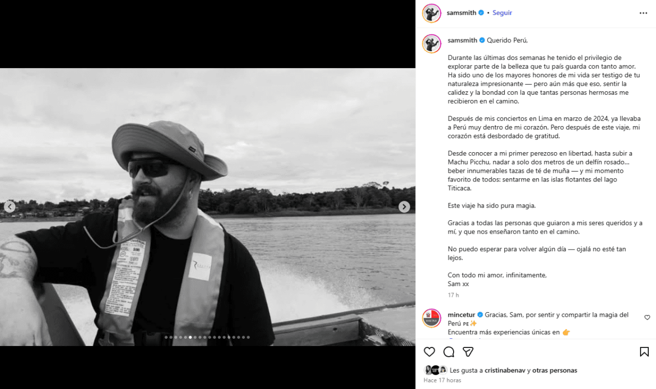 El reconocido cantante británico Sam Smith compartió un emotivo mensaje de agradecimiento tras concluir una visita de dos semanas al Perú. El intérprete, quien llegó al país a finales de diciembre de 2025 para disfrutar de las festividades de fin de año, recorrió diversos destinos emblemáticos, consolidando un vínculo personal con la cultura y la geografía peruana que inició tras su presentación en Lima en marzo de 2024.