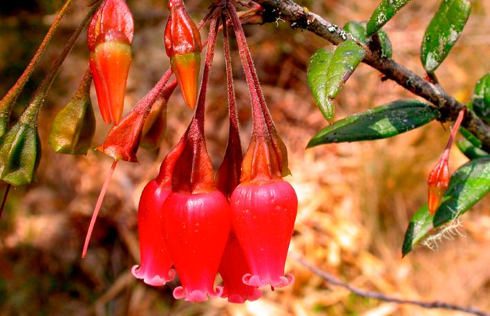 Las flores, de tonos rojo oscuro a rosado con lóbulos blanquecinos, destacan por su forma urceolada (de urna) y por ser de gran tamaño, alcanzando hasta 23.5 mm de longitud. Themistoclesia david-smithii se distribuye únicamente en el sector Santa Bárbara, dentro del PNYCh, y se encuentra en hábitats de transición, alternando con pastizales andinos.
