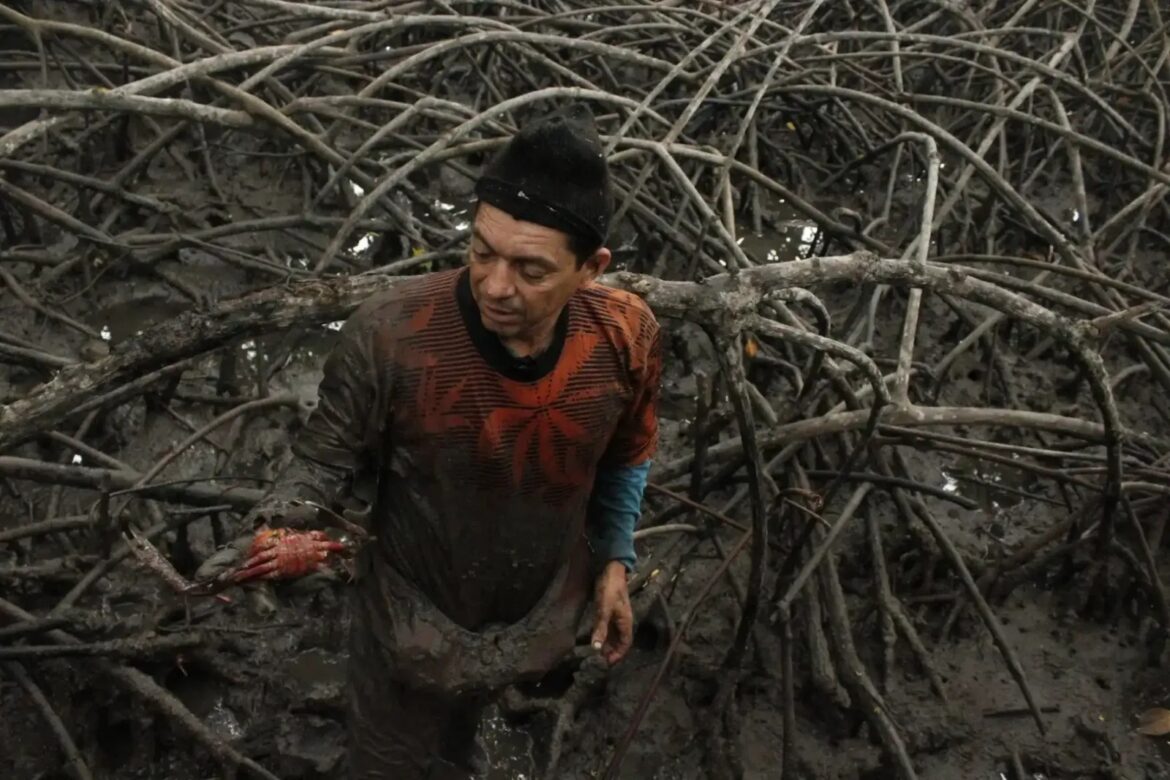 Hoy, los extractores de cangrejos enfrentan condiciones laborales desafiantes, incluyendo riesgos por fauna local y cambios en los patrones climáticos. Para protegerse de los ostiones y serpientes que habitan entre las raíces de los manglares, que según Víctor pueden medir hasta 4 metros, deben usar un equipo especializado. “Además, cuando llueve, los ríos suben y traen al manglar no solo lodo, sino también basura, que se acumula en el estero, se endurece y se queda allí”, añade.