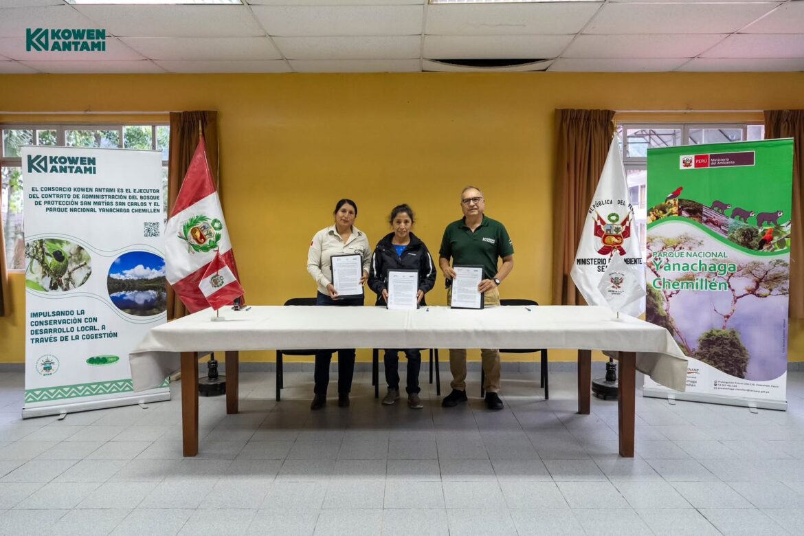 OXAPAMPA. Ayer 14 de enero, el Servicio Nacional de Áreas Naturales Protegidas por el Estado (Sernanp), a través de la jefatura del Parque Nacional Yanachaga Chemillén (PNYCh) y el Consorcio Kowen Antami, firmaron el primer Acuerdo de Conservación del 2025 con Juana María Pesi Arroyo y su esposo, Julián Timoteo Barrial Gonzales, propietarios del Fundo San Antonio y el emprendimiento “Café San Antonio”.
