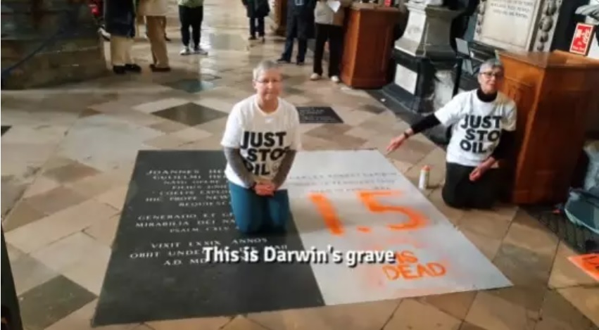Una pareja de activistas climáticas ha vandalizado este lunes la tumba del científico británico Charles Darwin en la londinense abadía de Westiminster como forma de protesta por el calentamiento global, en concreto por el incumplimiento de lo pactado en el Acuerdo de París, que fija un máximo de 1,5ºC en el aumento de la temperatura global.