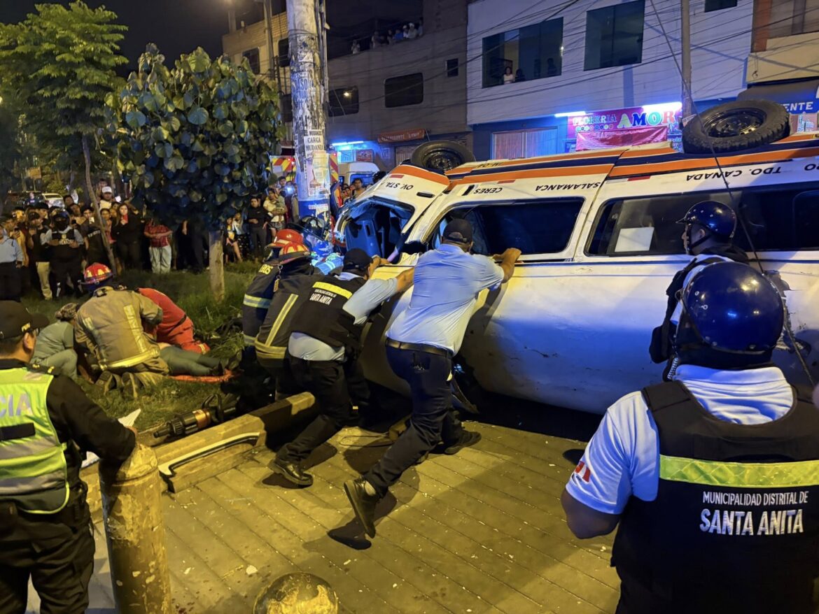 Un nuevo accidente de tránsito en Lima volvió a poner en evidencia los riesgos del transporte público informal. Una combi que cubría la ruta Ceres–Óvalo Santa Anita se estrelló violentamente contra un muro de concreto y un poste de alumbrado público, dejando como saldo una mujer fallecida y seis personas heridas, según confirmaron fuentes policiales y personal de salud.
