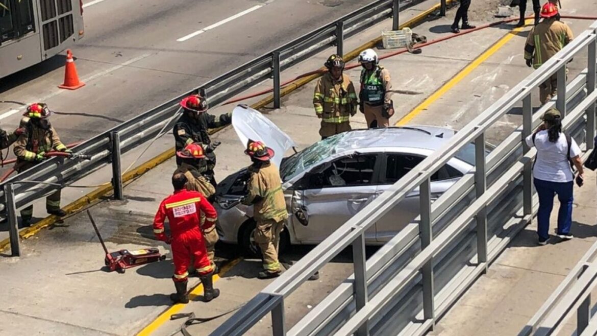 Un auto particular volcó este miércoles en la vía exclusiva del Metropolitano, a la altura de la estación Angamos, generando una rápida movilización de los servicios de emergencia y obligando a modificar el recorrido habitual de los buses del sistema de transporte.