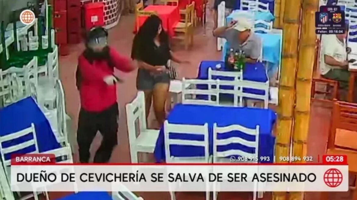 Lo que debía ser una jornada tranquila de verano en los balnearios de Barranca se transformó en una escena de terror cuando un sicario irrumpió en una conocida cevichería frente al mar. El objetivo era claro: acabar con la vida del dueño del establecimiento. Las imágenes de las cámaras de seguridad captaron el momento exacto en que el delincuente apuntó directamente a la cabeza del empresario ante la mirada atónita de comensales y familias que buscaban refugio bajo las mesas.