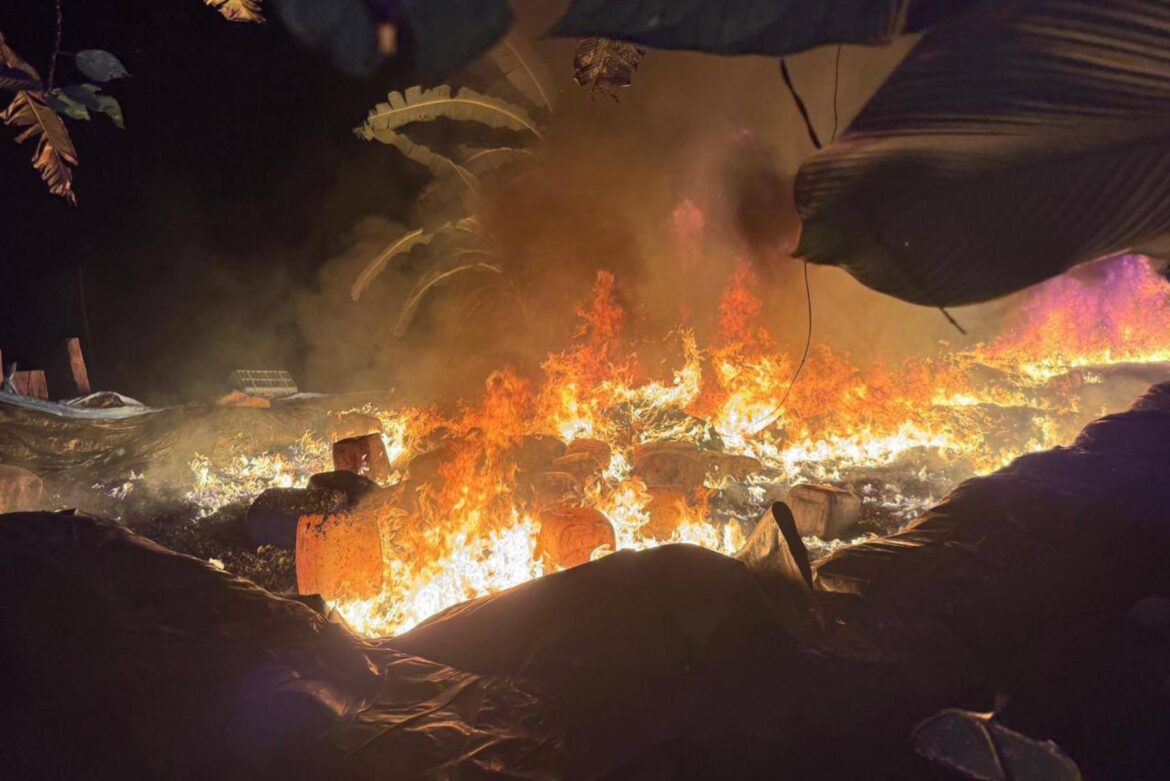 Con la autorización del Ministerio Público, se procedió a la destrucción e incineración in situ de los laboratorios y del material incautado, cumpliendo estrictos protocolos operacionales.