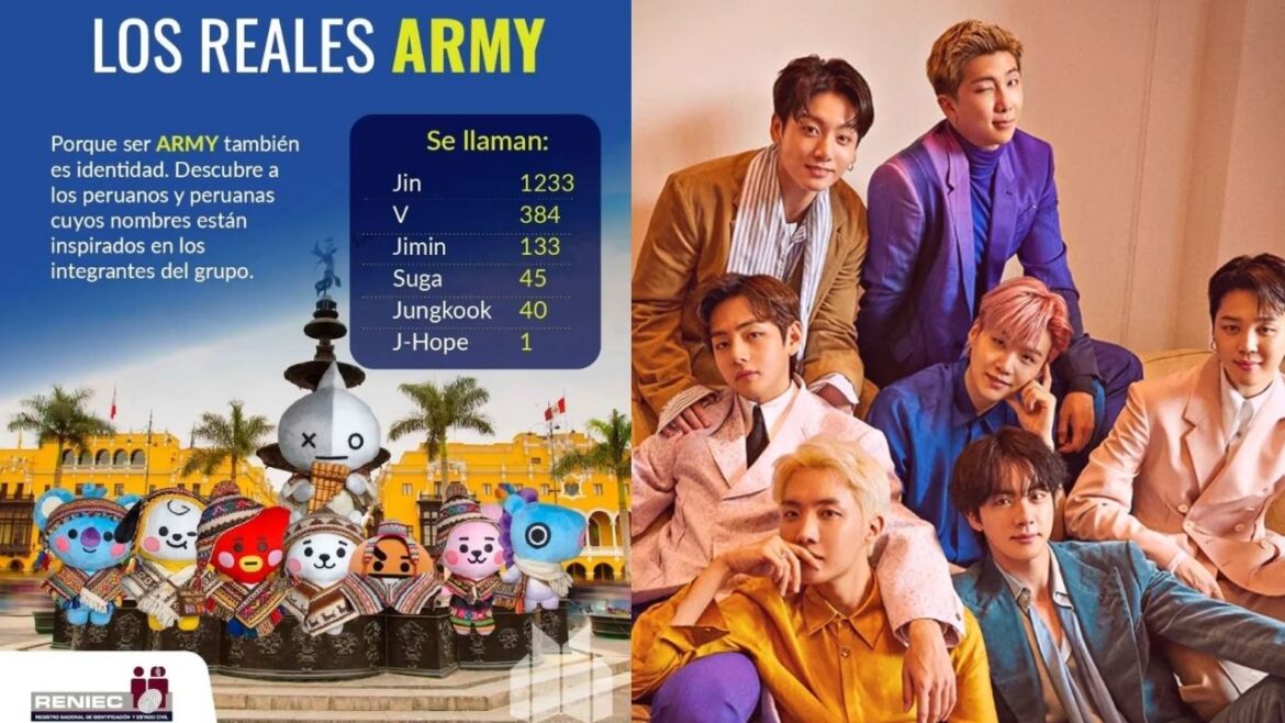 El impacto cultural de BTS en el país ha trascendido los escenarios para instalarse en la identidad de las nuevas generaciones. El Registro Nacional de Identificación y Estado Civil (Reniec) reveló que, a la fecha, existen 1 836 peruanos cuyos nombres están inspirados en los siete integrantes de la agrupación de K-pop. Esta tendencia, impulsada por la comunidad ARMY, refleja cómo el fanatismo se ha convertido en un legado generacional que ahora figura en los documentos oficiales.