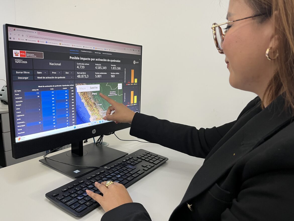 El Ministerio del Ambiente (Minam) puso a disposición de la ciudadanía la plataforma GEOQUEBRADAS, una herramienta digital gratuita que permite identificar el estado de las quebradas y el riesgo de activación de huaicos, deslizamientos y derrumbes, especialmente durante periodos de lluvias intensas.