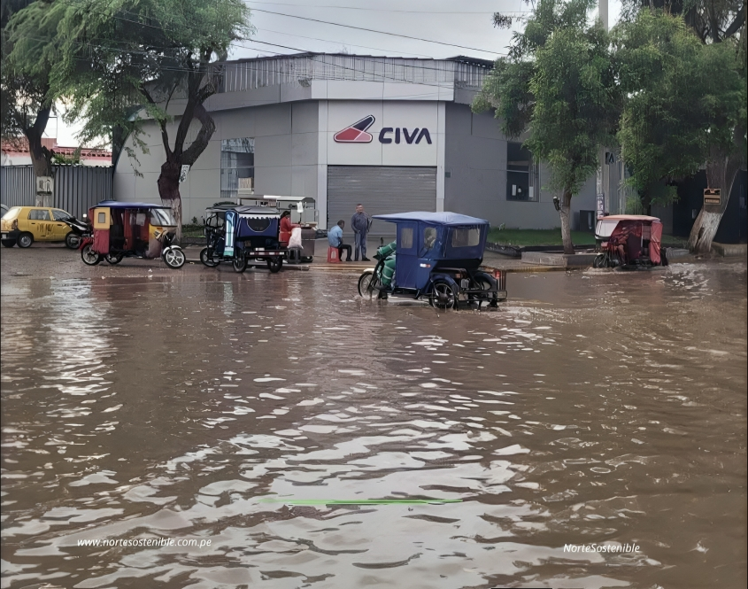 Uno de los sectores más afectados fue la urbanización Ignacio Merino, ubicada en una zona baja de la ciudad. Desde primeras horas de la mañana, las imágenes mostraban avenidas completamente anegadas, con vehículos detenidos y peatones obligados a buscar rutas alternas para desplazarse.
