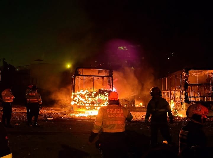 “Son seis buses afectados: cinco totalmente calcinados y uno parcialmente”, explicó Caballero, agregando que aún se desconocen las causas del incendio. La Policía ya realizó las primeras diligencias y aseguró la zona mientras avanza la investigación sobre lo ocurrido.