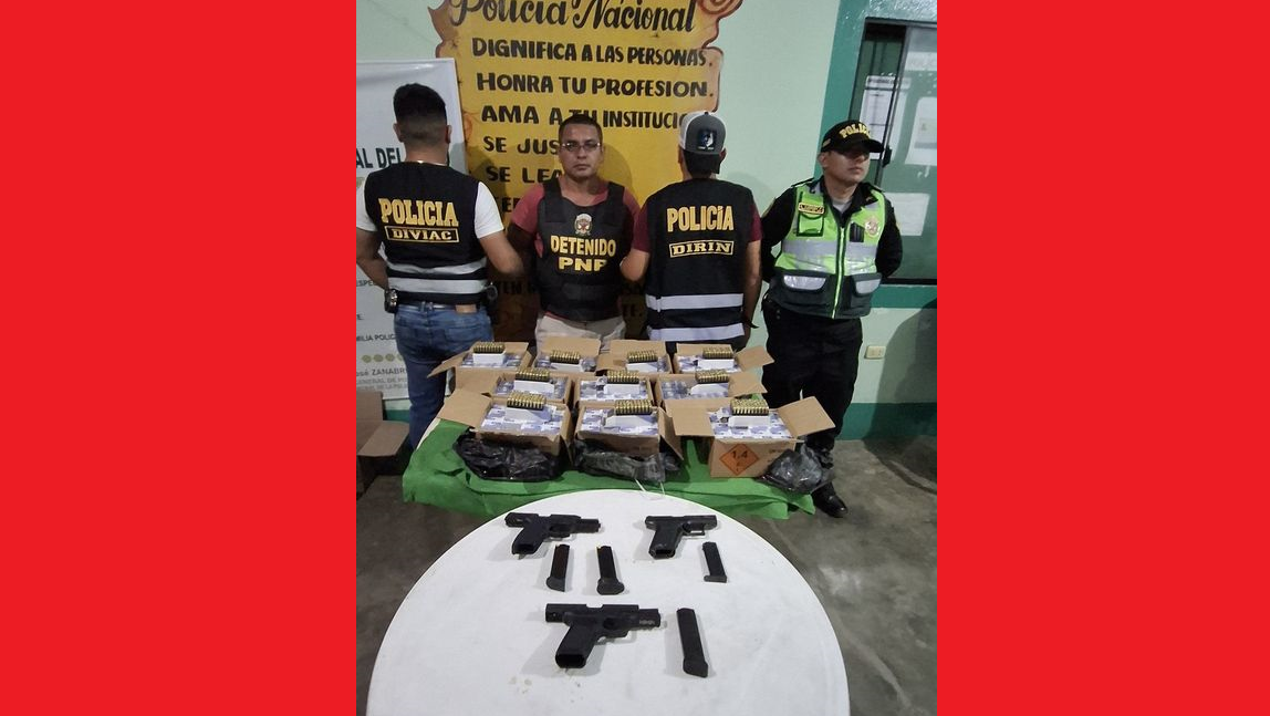 La Policía Nacional del Perú intervino, este domingo 27 de octubre, a un sujeto que trasladaba gran cantidad de armamento militar en la caleta de un vehículo por el km 200 de la carretera Panamericana Norte, vía Sullana, Tumbes.