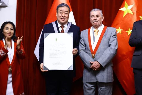 En su intervención, Song Yang agradeció al Congreso y afirmó que la condecoración refleja no solo su labor personal y la de su equipo, sino también el sólido momento que atraviesan las relaciones bilaterales entre Perú y China. Destacó la exitosa visita de Estado del presidente Xi Jinping en noviembre de 2024 y el crecimiento del intercambio comercial, así como el impacto positivo de proyectos estratégicos para el desarrollo nacional.
