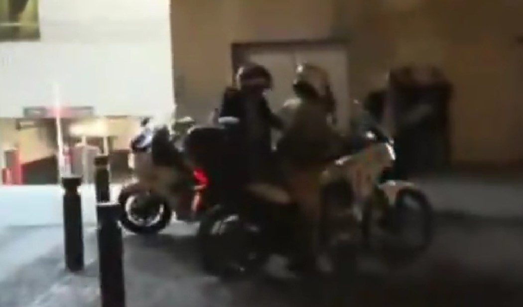 9:36 P. M.: Jorge Nieto llega a las instalaciones del Centro de Convenciones de Lima en moto lineal acompañado de un oficial policial.