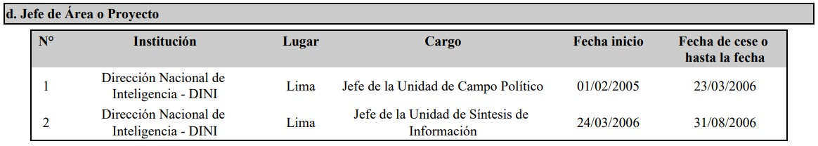 Es decir, sí existe registro de su paso por la DINI y de un cargo vinculado al análisis político. Sin embargo, ello no constituye evidencia de manipulación electoral ni prueba alguna sobre supuestas operaciones ilegales posteriores en la ONPE.
