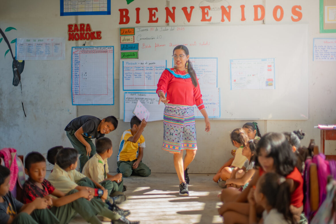 En un aula de la Amazonía ucayalina, los niños que antes evitaban hablar shipibo hoy levantan la mano con entusiasmo. Detrás de este cambio está Pilar Rengifo Vásquez, docente de la comunidad Curiaca de Caco, en Iparía, Ucayali, quien decidió regresar para rescatar la lengua y la identidad cultural de su pueblo desde la escuela.